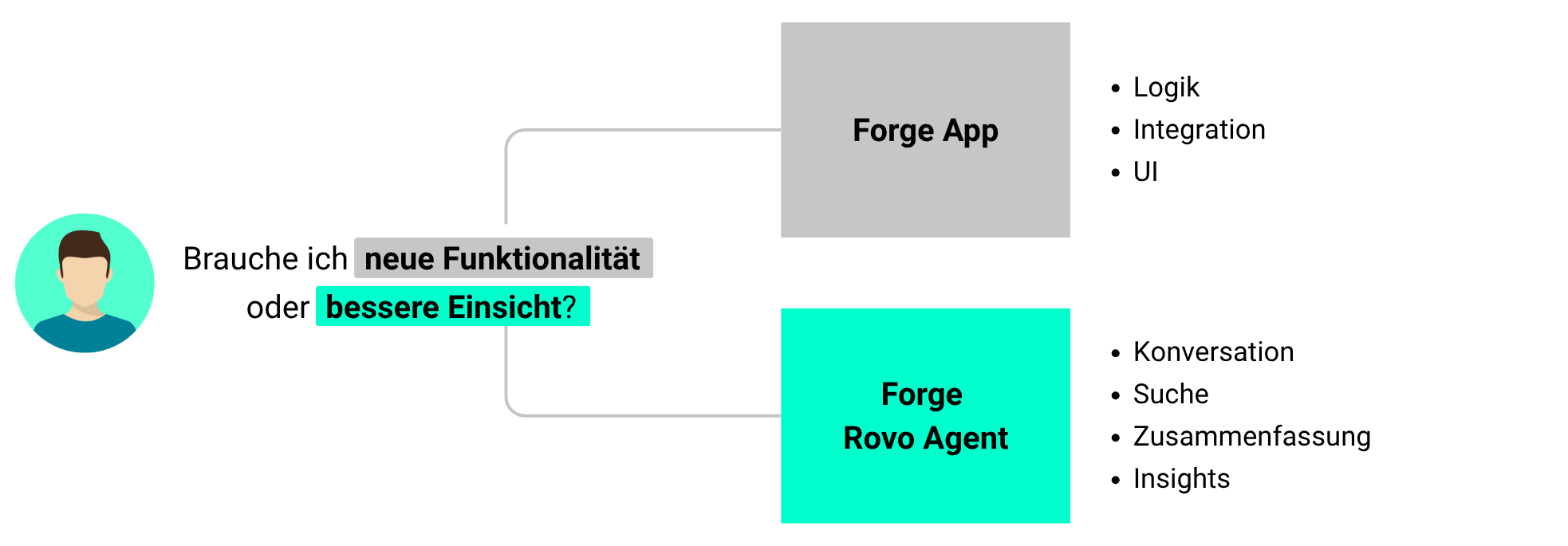 Absolut. Viele anspruchsvolle Lösungen kombinieren beide Ansätze: eine Forge-App, die komplexe Logik und Integrationen implementiert, gepaart mit einem Rovo-Agent, der eine intuitive, konversationale Oberfläche darüberlegt.