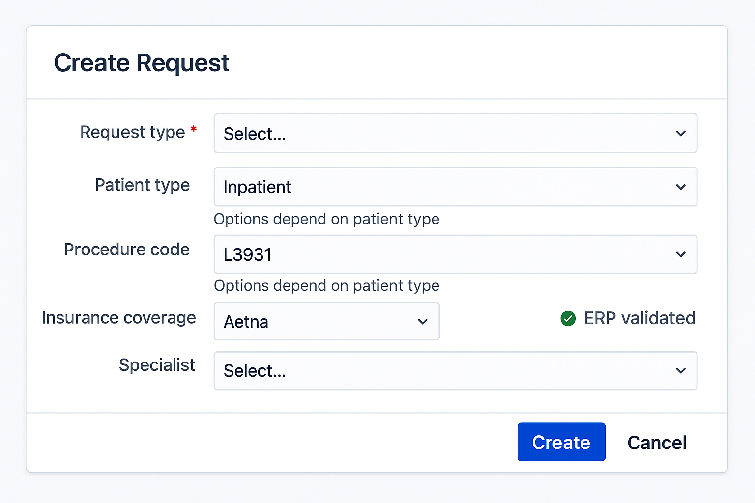 Praxisbeispiel: Eine Gesundheitsorganisation benötigt Intake-Formulare, deren Fragen sich dynamisch je nach Patiententyp, regulatorischen Anforderungen für den jeweiligen Eingriff, aktueller Versicherungsdeckung (aus einem externen System) und verfügbarer Fachkapazität ändern – und die all dies validieren, bevor die Anfrage überhaupt erstellt wird.